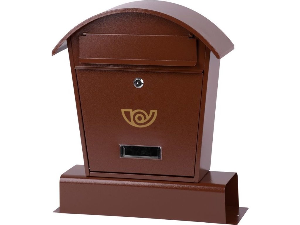 Elegantní poštovní schránka v hnědé barvě. Obsahuje část na letáky. Rozměry: 40x14x49 cm. Materiál: kov.