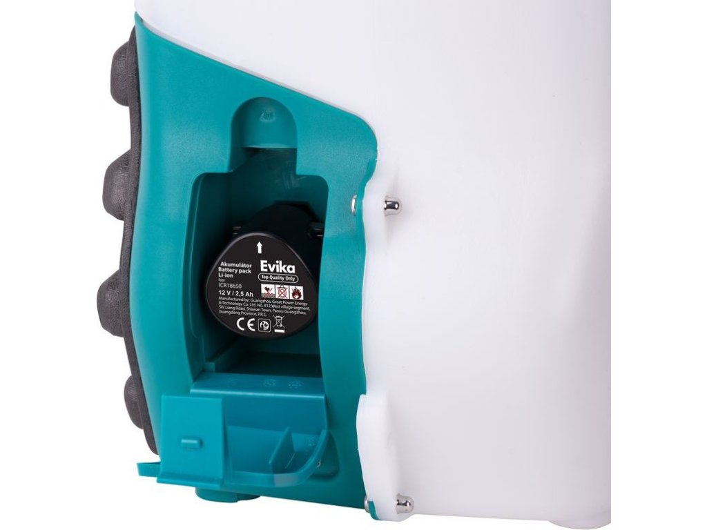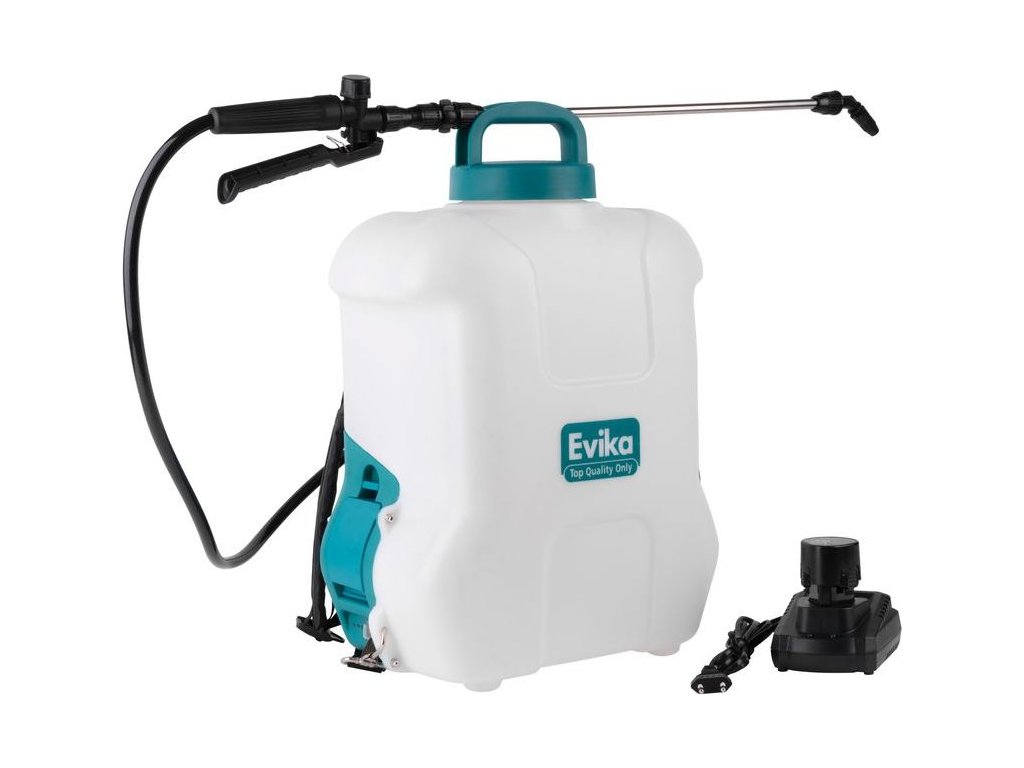 | Standardní výbava: | Aku postřikovač Evika DJ160, 1x akumulátor 2,6Ah, 1x nabíječka, 1x popruhy |