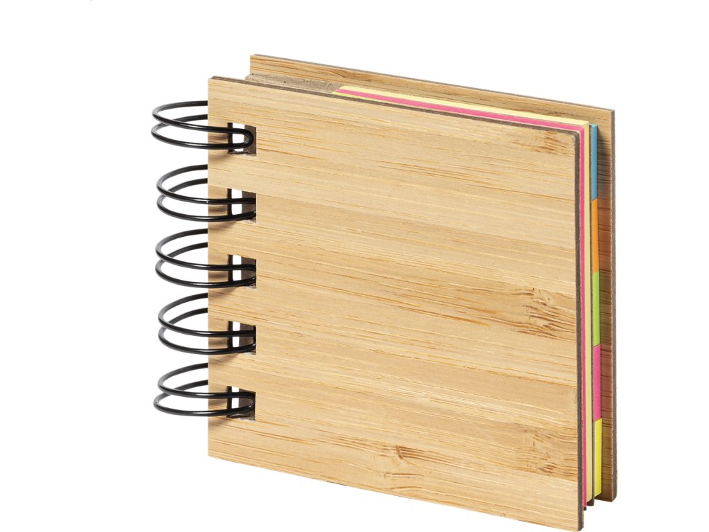 Bambusem potažený spirálový blok se 75 velkými (ve 3 různých barvách) a 125 malými lepicími lístky (v 5 různých barvách).