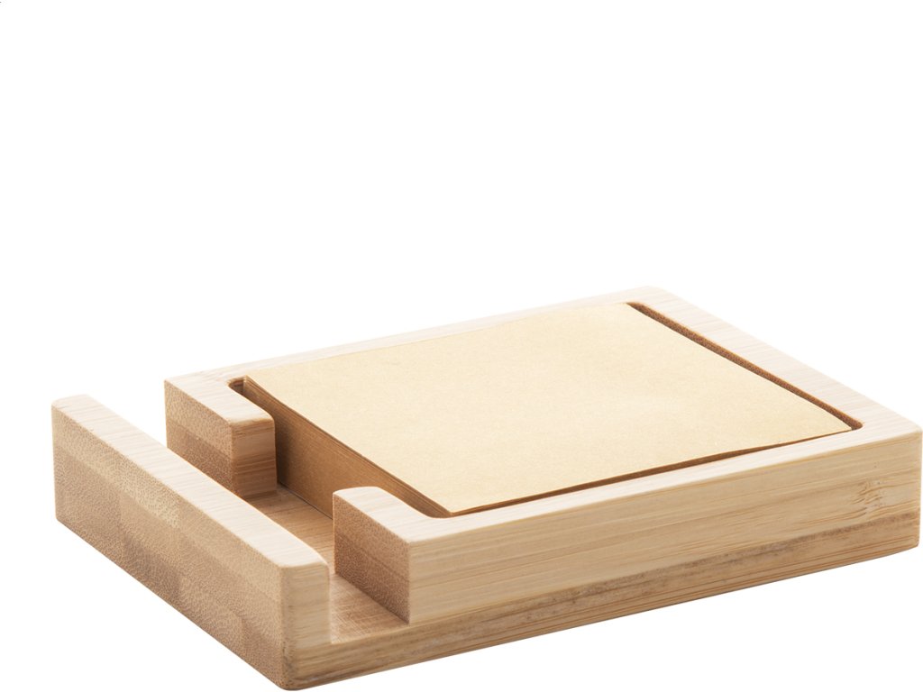 Bambusový stojánek na mobilní telefon se 125 listy poznámkového bloku z recyklovaného kraftového papíru (75x75 mm).
