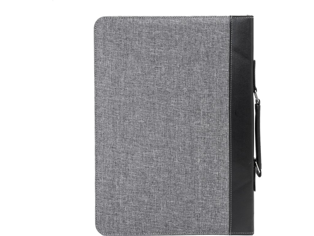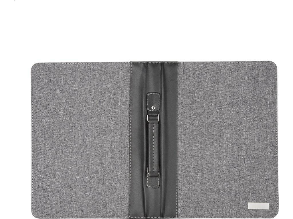 A4 sloha na dokumenty s deskami z PU kůže a plátna s kovovým štítkem, na zip s uchem a s 20 listým linkovaným blokem a solární kalkulačkou.