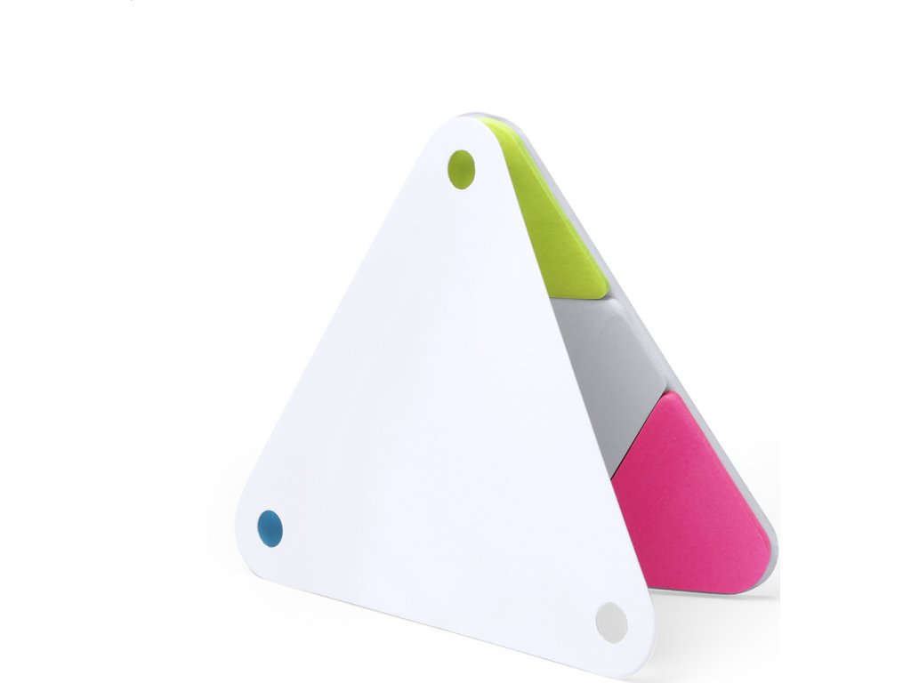 Trojúhelníkový bloček s deskami z recyklované lepenky se samolepícími lístky ve 2 velikostech.Vč. 20 ks trojhranných a 60 ks trojúhelníkových lístků.