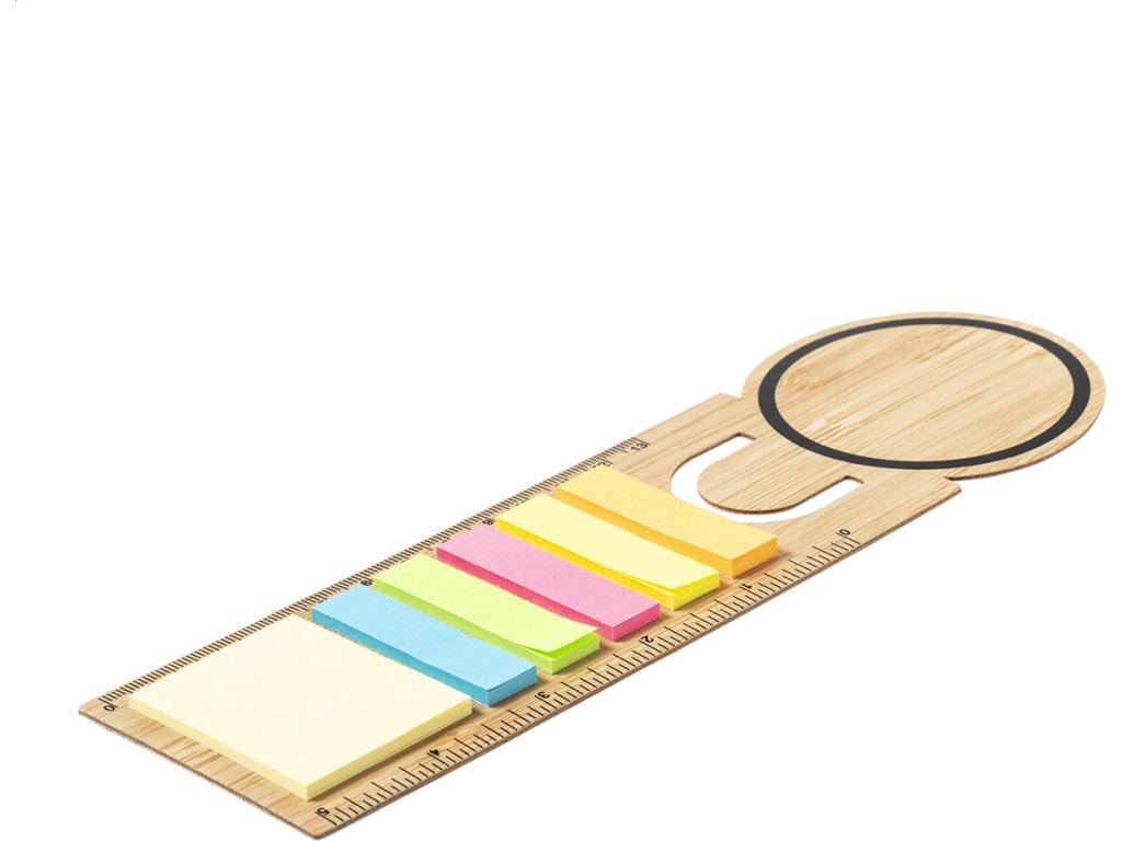 Bambusová záložka a pravítko s 25 velkými a 125 malými lepicími papírky (v 5 různých barvách).