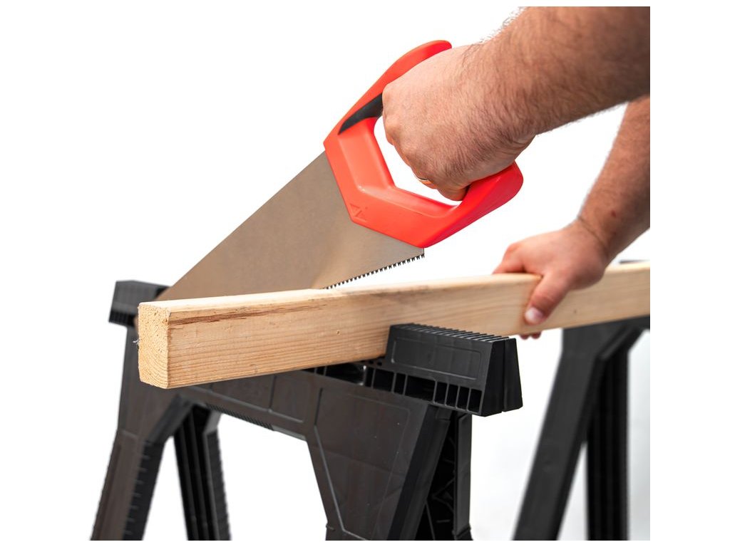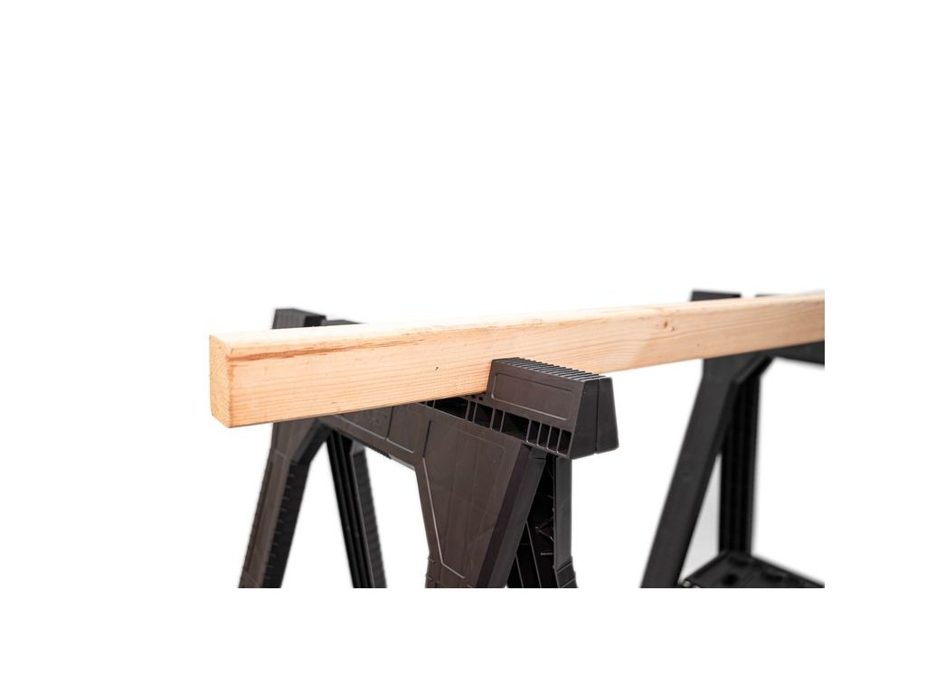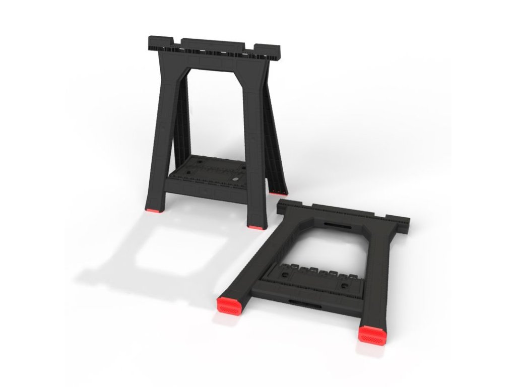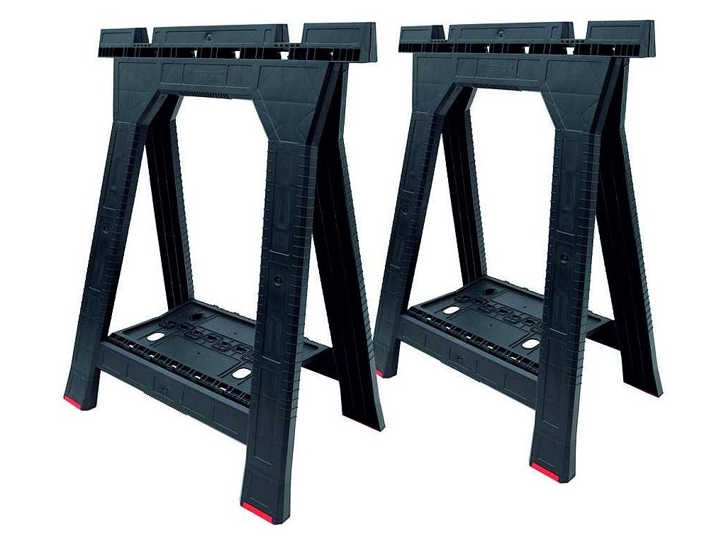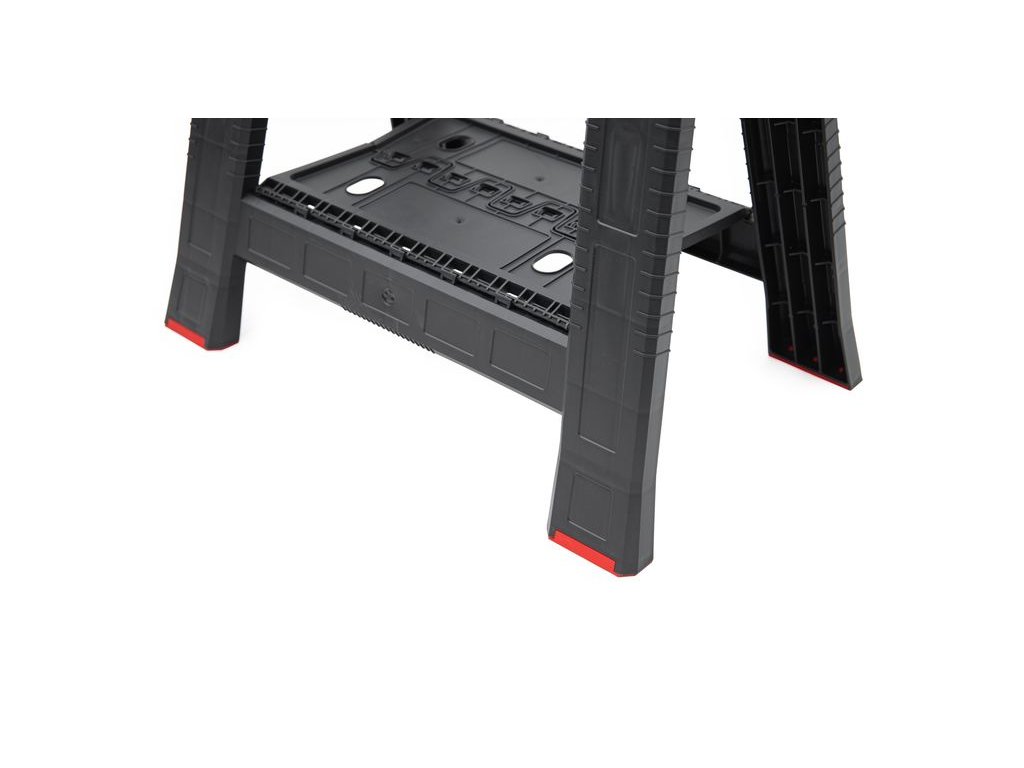 Vybavený přídavnou policí mezi nohama, držáky na ruční nářadí a funkčními stabilizačními štěrbinami pro řezání materiálů.