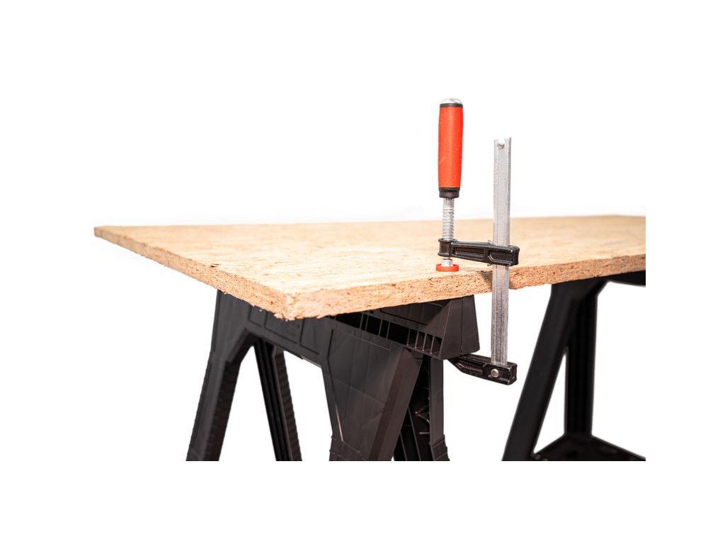 Konstrukce umožňuje upevnění pracovní desky pomocí šroubových svorek.