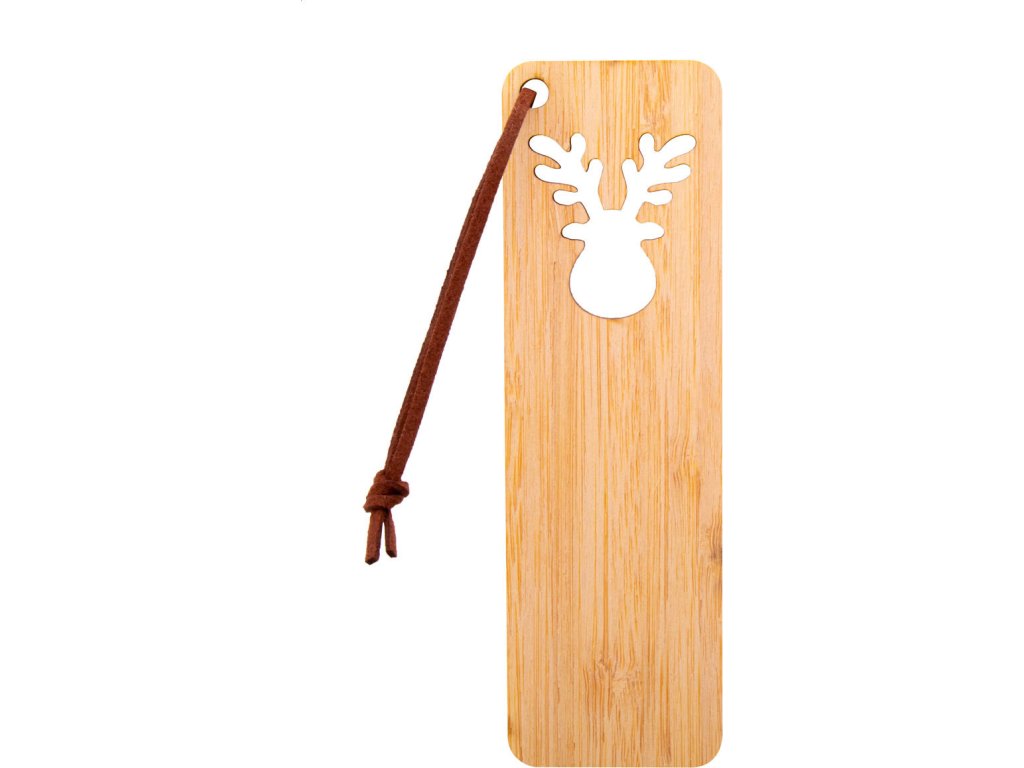 Bambusová záložka do knihy s vyřezaným vánočním motivem a poutkem z PU kůže.