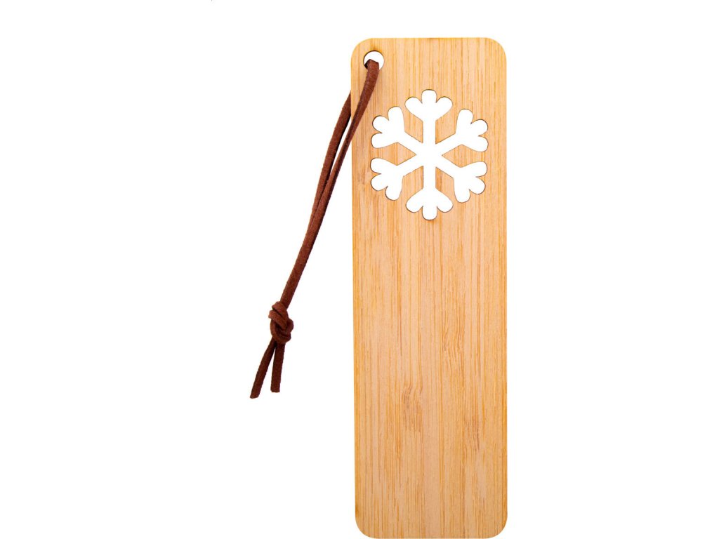 Bambusová záložka do knihy s vyřezaným vánočním motivem a poutkem z PU kůže.