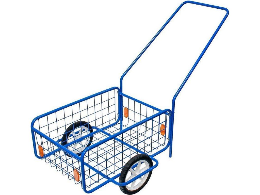 Ruční dopravní vozík je vyhotoven z ocelových trubek, výplň z ocelového pletiva, rukojeť odnímatelná, kola polypropylenová s plnou obručí.