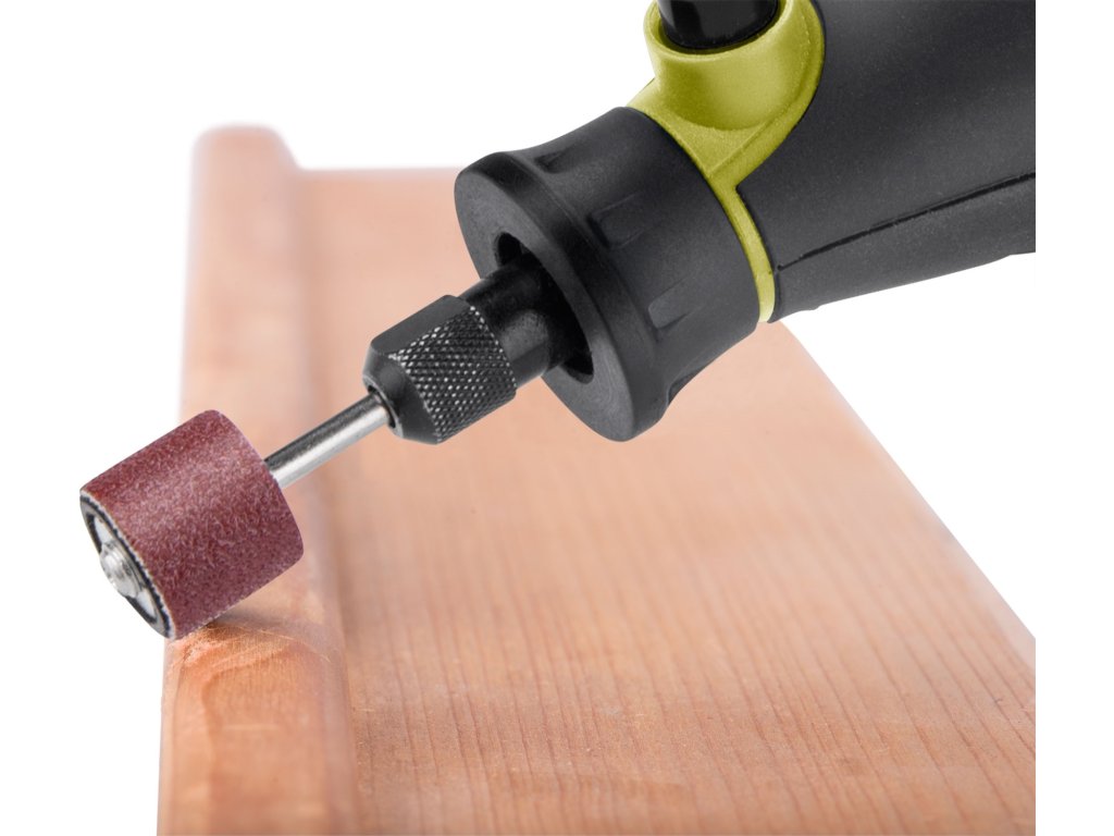 Malá bruska s řadou nástavců, určená k jemným gravírovacím pracím, preciznímu opracování dřeva, kovu či plastů a práci ve stísněných prostorech. Má ergonomický tvar a je pokrytá gumou v místech úchopu, což snižuje únavu při práci. Stroj umožňuje výměnu a montáž upínacích kleštin pro uchycení nástrojů s průměrem stopky 3 nebo 3,2 mm. Součástí balení je sada 210 kusů brusných a řezacích nástrojů a nástavců. Pro velmi jemnou a drobnou práci je u brusky ohebný nástavec.