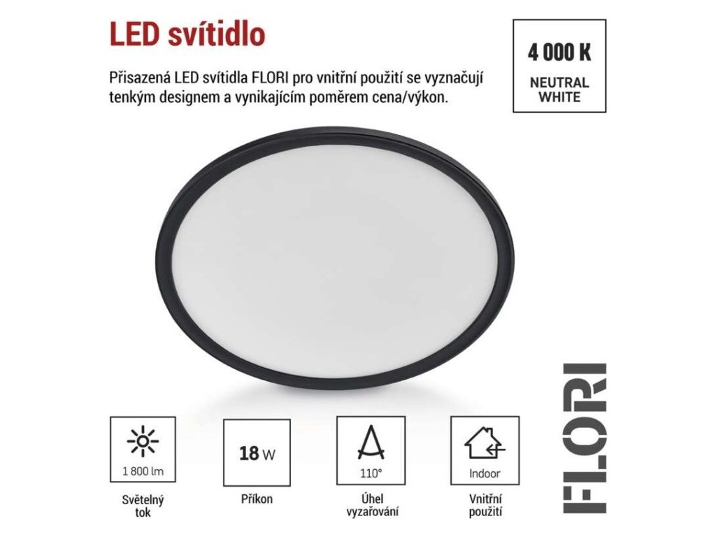 LED přisazené svítidlo FLORI kruhové, černé, 18W, neutrální bílá