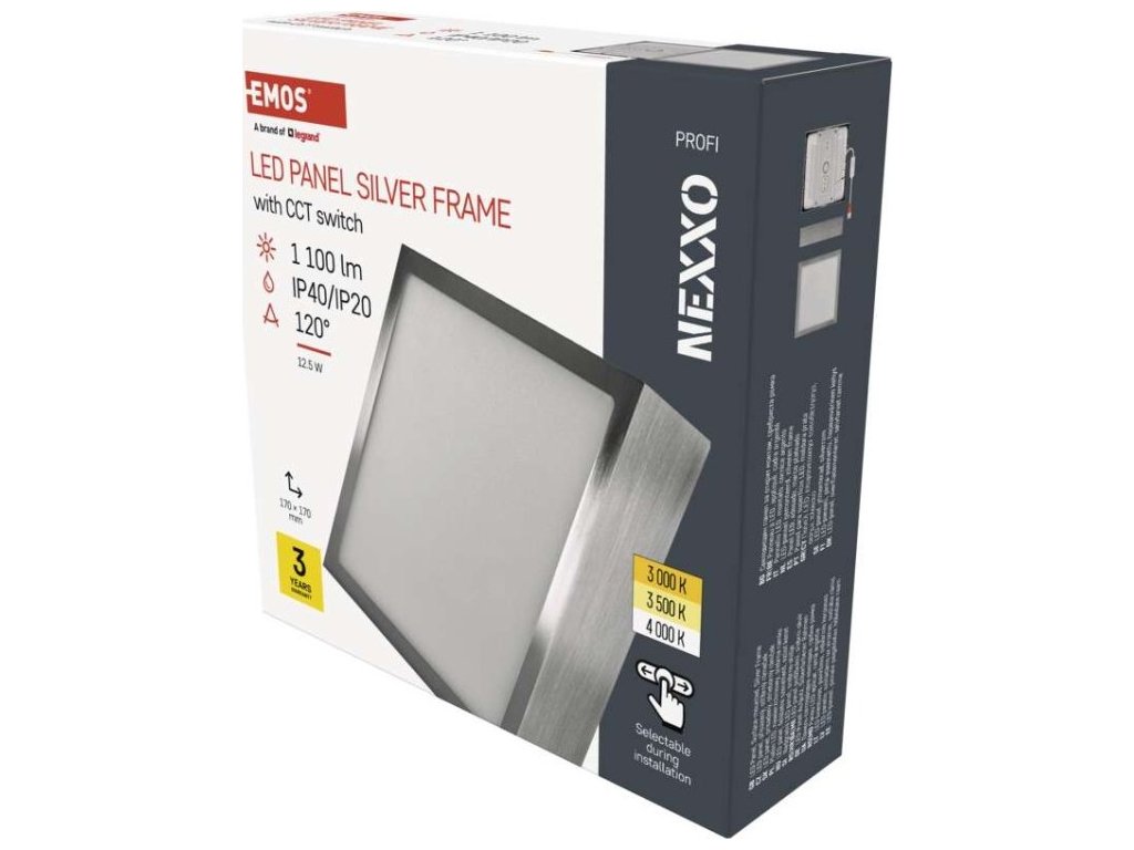 LED přisazené svítidlo NEXXO, čtvercové, stříbrné, 12,5W, se změnou CCT