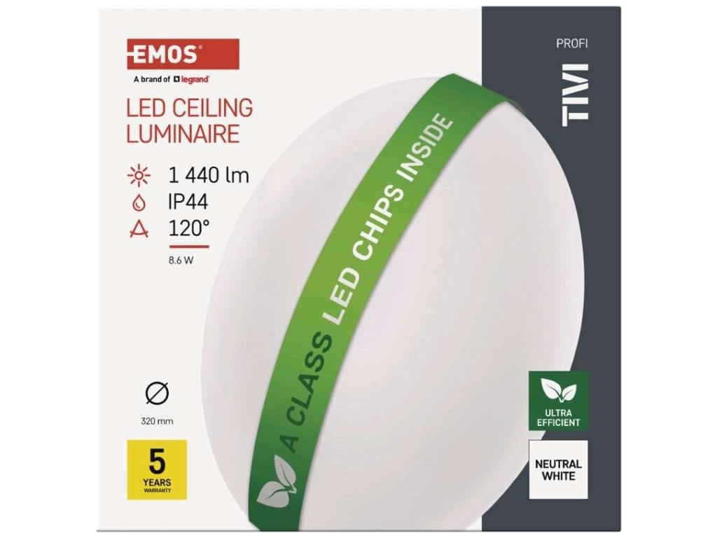 LED přisazené svítidlo TIVI, A CLASS, kruhové bílé 8,6W, IP44, neutrální bílá