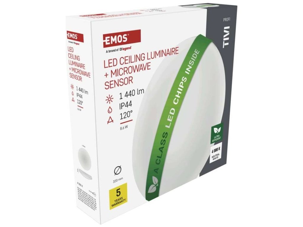 LED přisazené svítidlo TIVI, A CLASS, MW sensor, kruhové bílé 8,6W, IP44, neutrální bílá