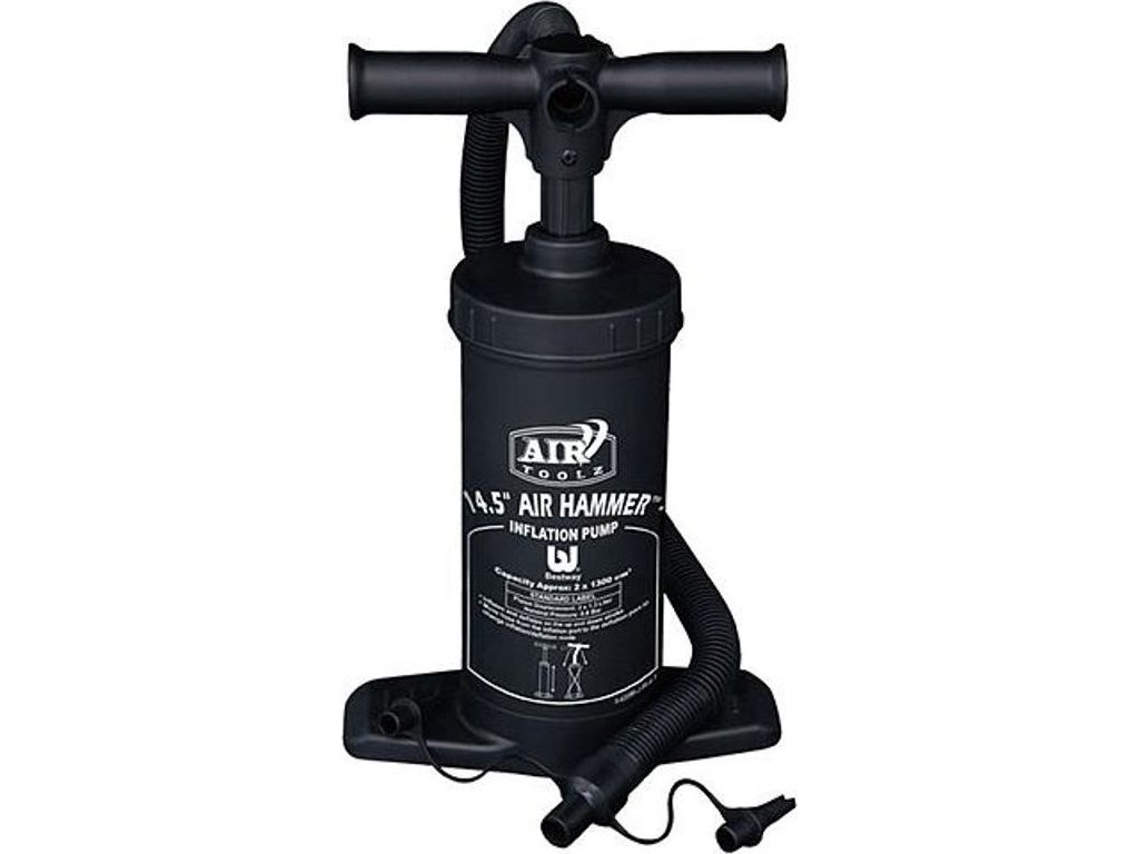 Air Hammer™ - nafukovací ruční pumpa od společnosti Bestway® nafukuje a vyfukuje trubice, zahradní bazény, míče, nafukovačky, hračky, nafukovací matrace a další výrobky. Navržena je tak, aby poskytovala maximální průtok vzduchu, dodává nepřetržitý proud při zdvihu nahoru i dolů.