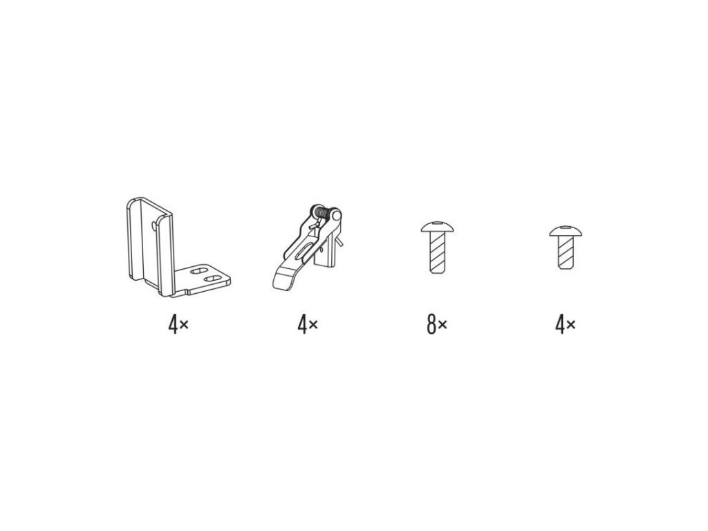 Montážní příslušenství pro panely PROXO a MAXXO 60×60 cm a 60×30 cm. Čtyři pružiny sloužící pro přisazenou montáž panelu do připraveného otvoru.