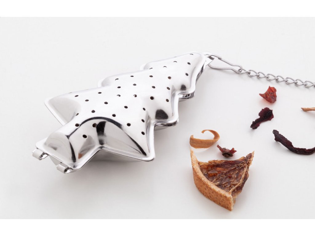 Nerezové čajítko na vánoční čaj s řetízkem a klipem. S potisknutelnou plochou na jedné straně.