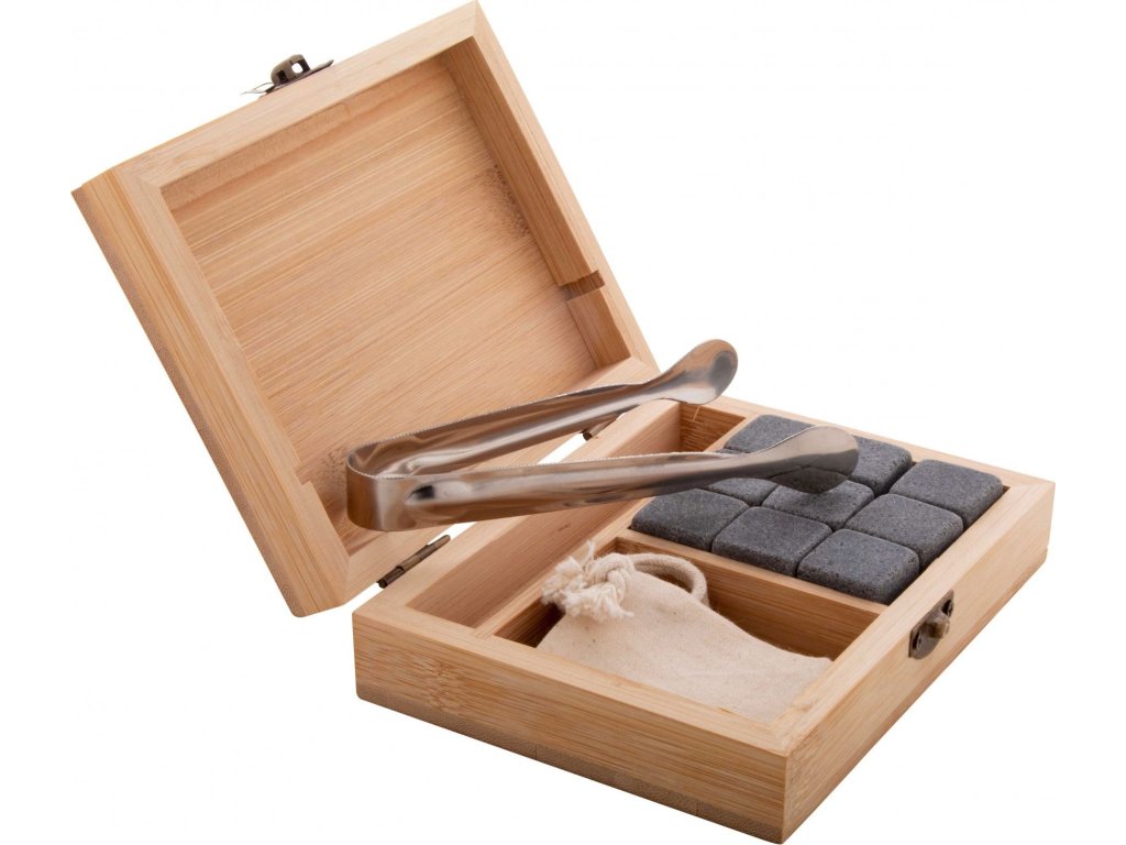 Opakovaně použitelná sada kamenných kostek ledu v bambusové krabičce. Obsahuje 9 kamenných kostek na led, bavlněný úložný sáček a nerezové kleště.