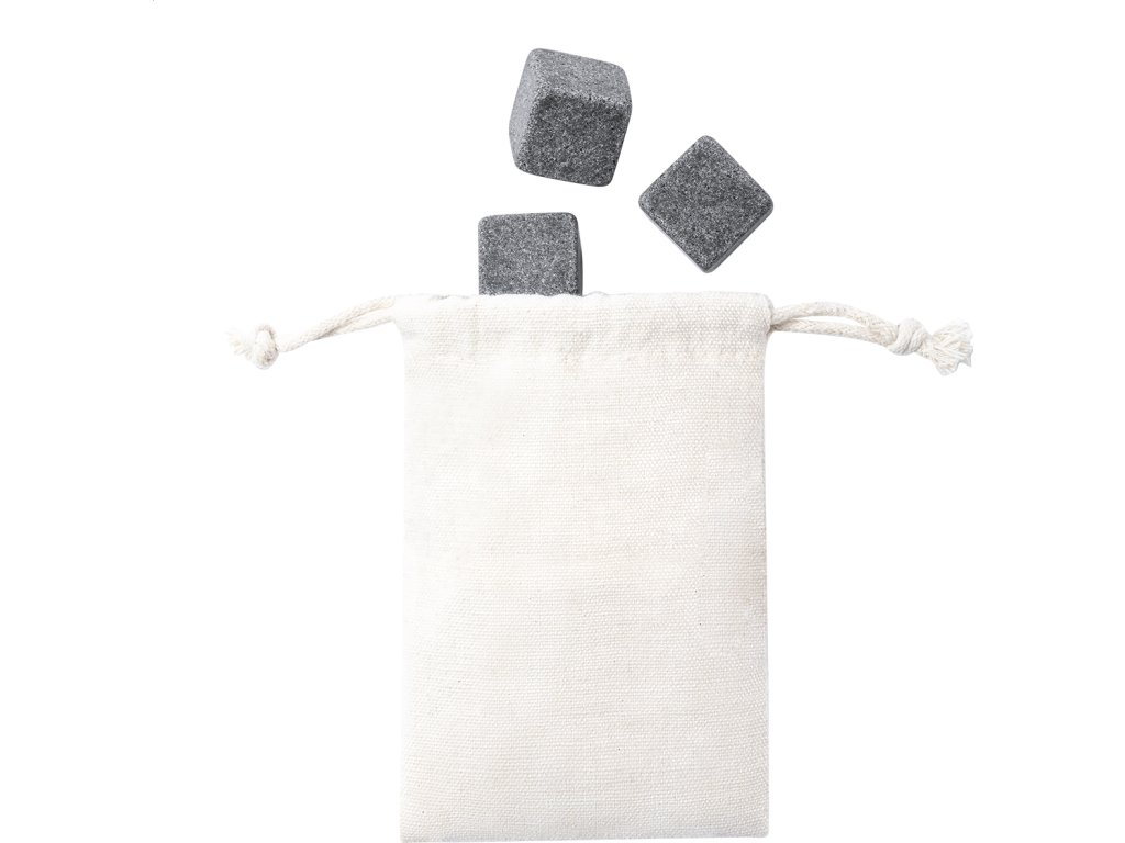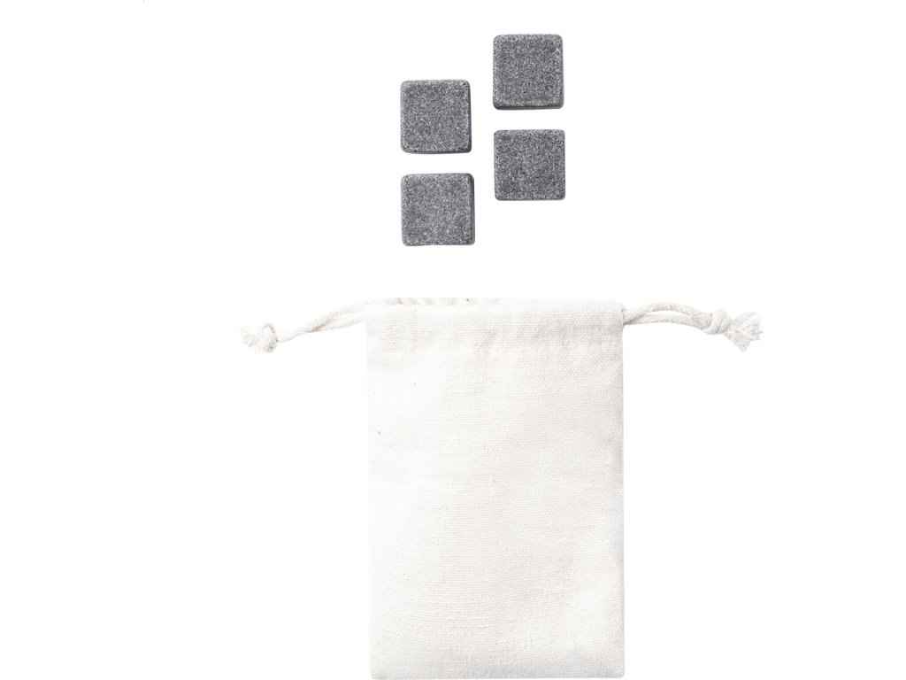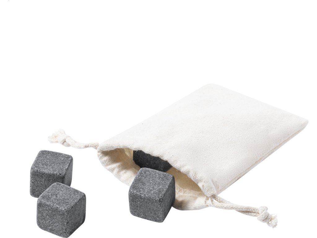 Sada 4 ks opakovaně použitelných chladících kamenných kostek v bavlněném sáčku.