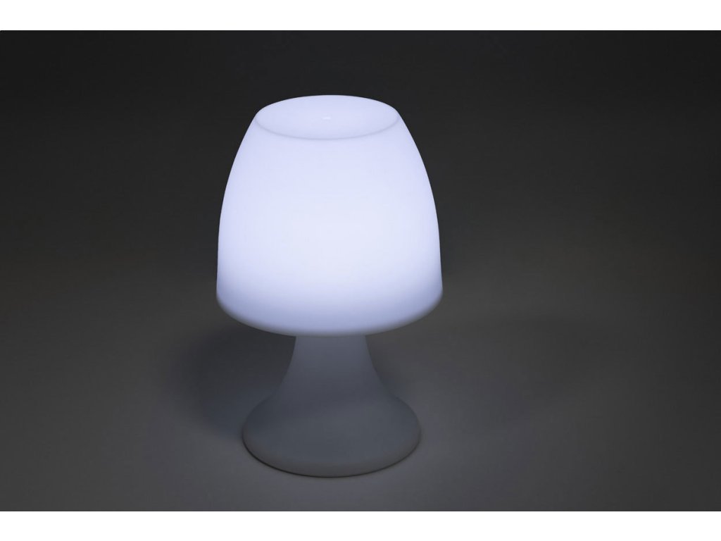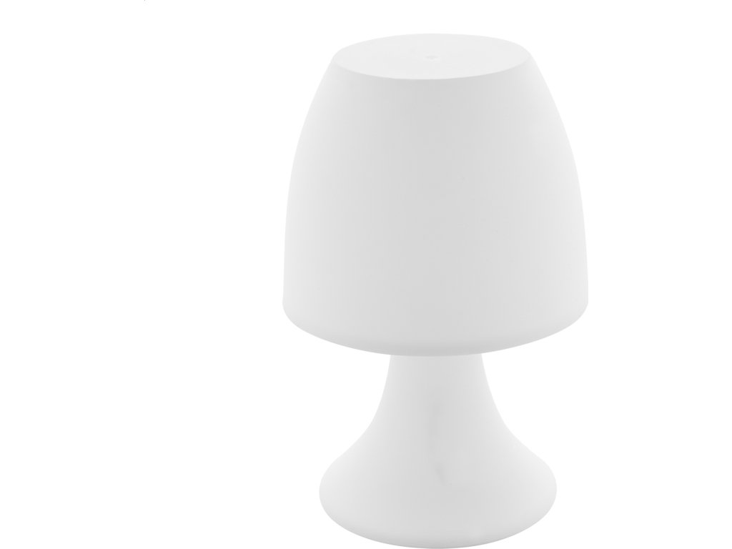 Plastová stolní lampa s bílým světlem LED. Funguje na 3 baterie AAA, bez baterií.