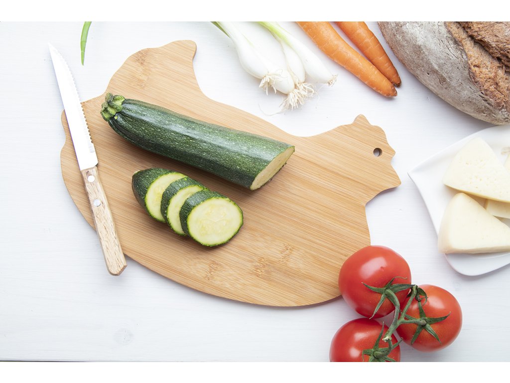 Bambusové prkénko na krájení ve tvaru kuřete.