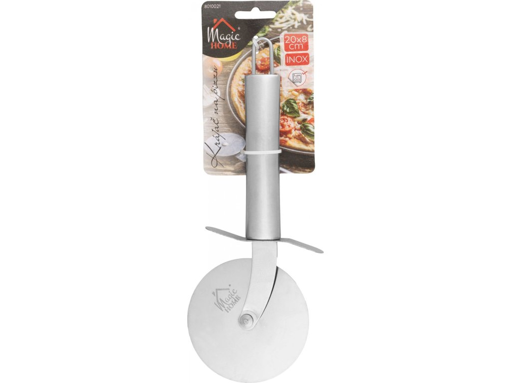 Perfektní pomocník pro každého milovníka pizzy. Krájecí kolečko MagicHome o rozměrech 20 x 8 cm je vyrobeno z kvalitní nerezavějící oceli, díky čemuž lehce a přesně nakrájíte pizzu či slané koláče na dokonalé kousky.