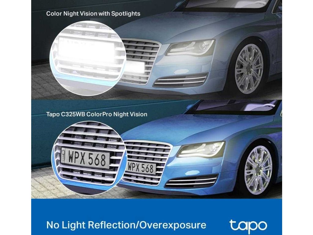 Bezpečnostní kamera Tapo C325WB natáčí ve dne v noci bez sebevětších obtíží. Barevný noční režim s technologií ColorPro a HDR zajistí dokonalý obraz nahrávaný za slabého okolního osvětlení. Barvy působí přirozeně i za tmy a neunikne vám žádný detail ani v temném zákoutí vašeho pozemku. Nepotřebujete venkovní světlo, takže ušetříte za energie. Zároveň žádné světlo neláká poletující hmyz, který by mohl spustit falešný poplach.