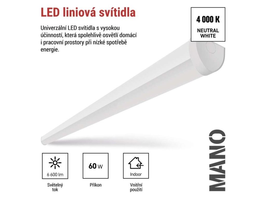 LED liniové svítidlo MANO 60W neutrální bílá