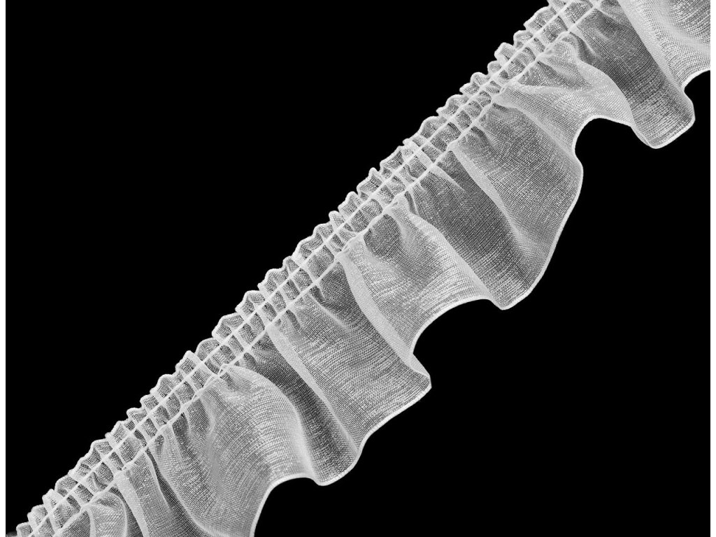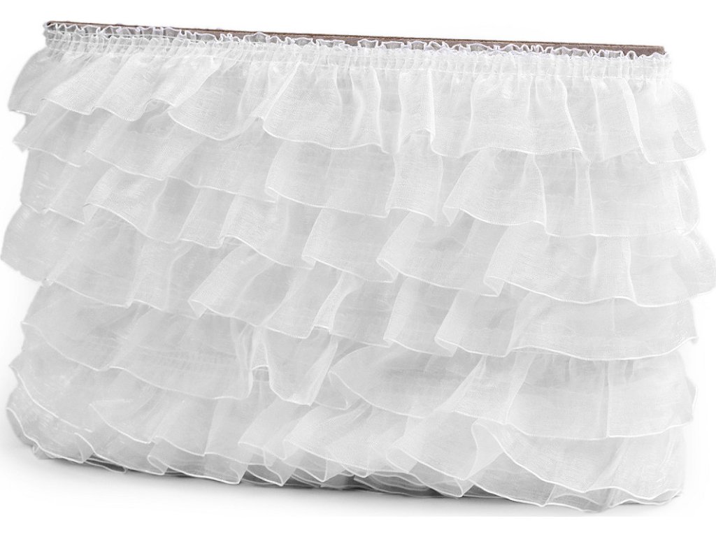 Organzový volánek se jemně leskne a je pevně prošitý. Ozdobíte s ním sukně, šaty nebo halenky. Můžete ho našít také na karnevalové sukýnky, šatičky na panenky, dekorační polštářky apod.