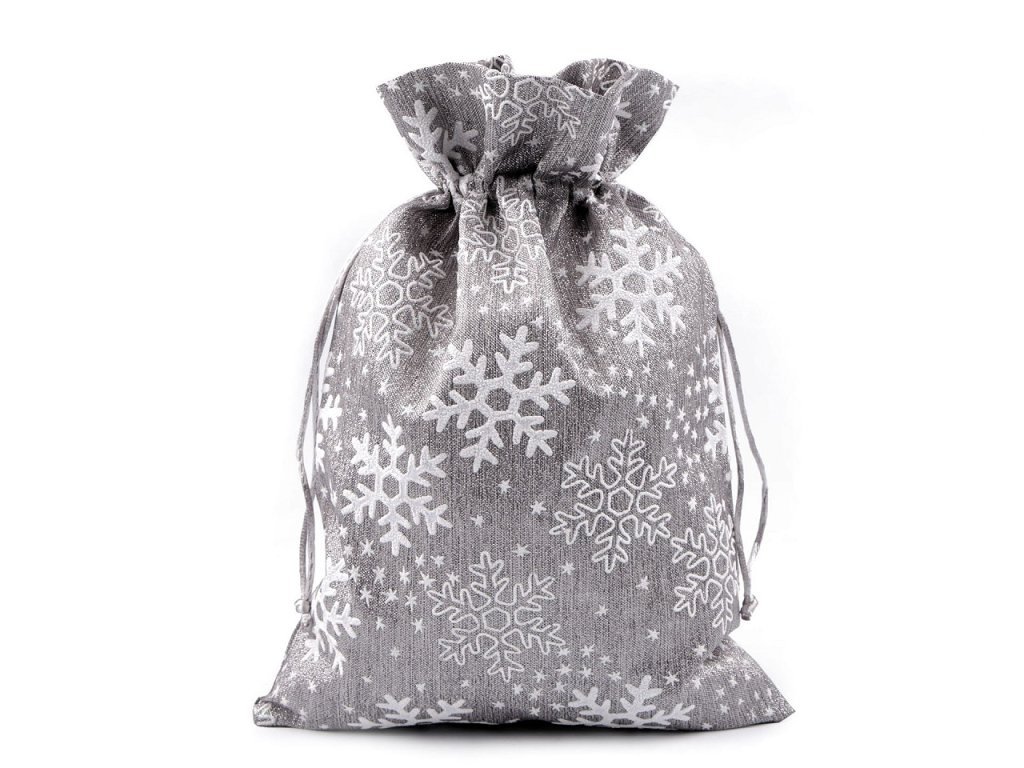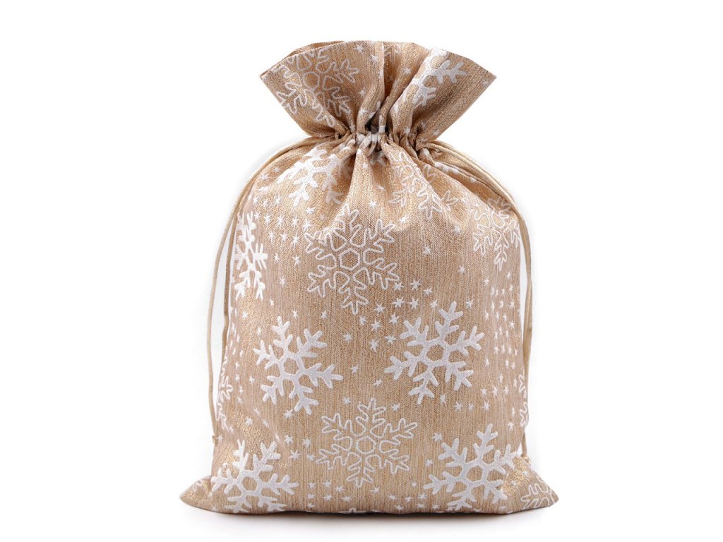 Vánoční dárkový pytlík vločky brokátový 20x30 cm