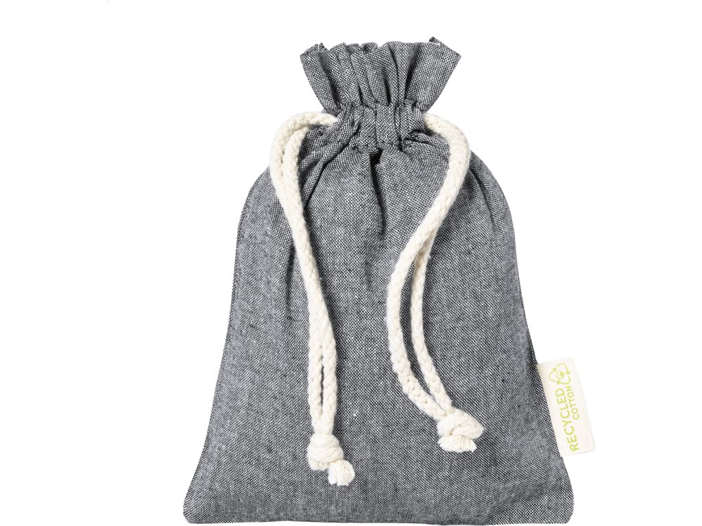 Opakovaně použitelný pytlík na potraviny z recyklované bavlny se stahování na šňůrku. 100% recyklovaná bavlna, 120 g/m².