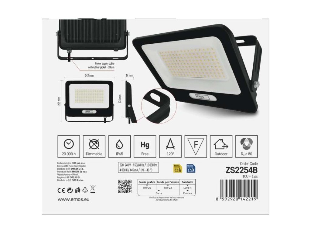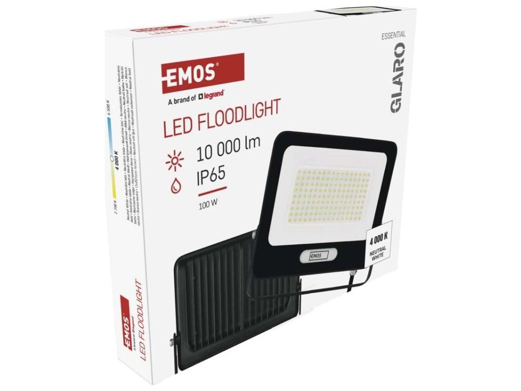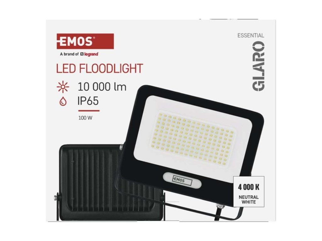 LED reflektor GLARO 100W, černý, IP65, 10000 lm, neutrální bílá