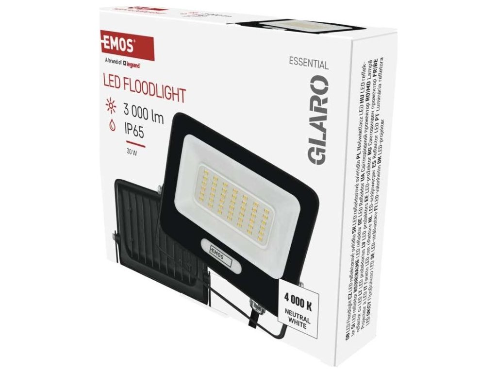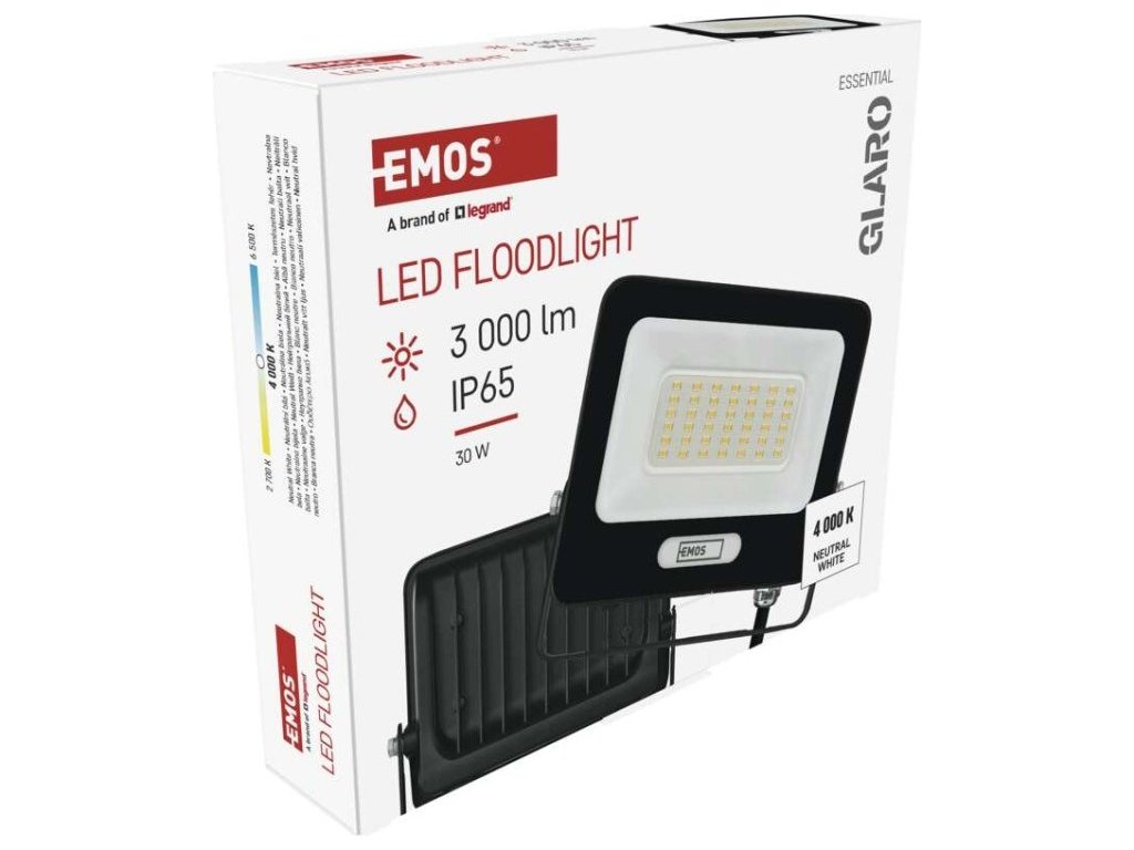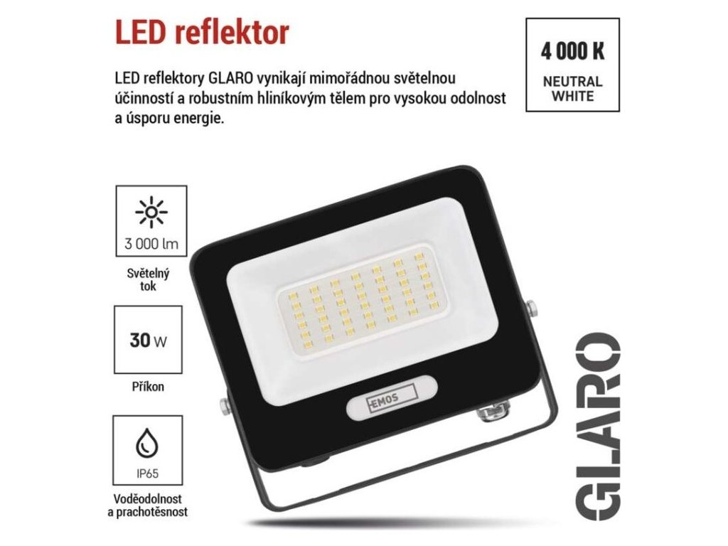 LED reflektor GLARO 30W, černý, IP65, 3000 lm, neutrální bílá