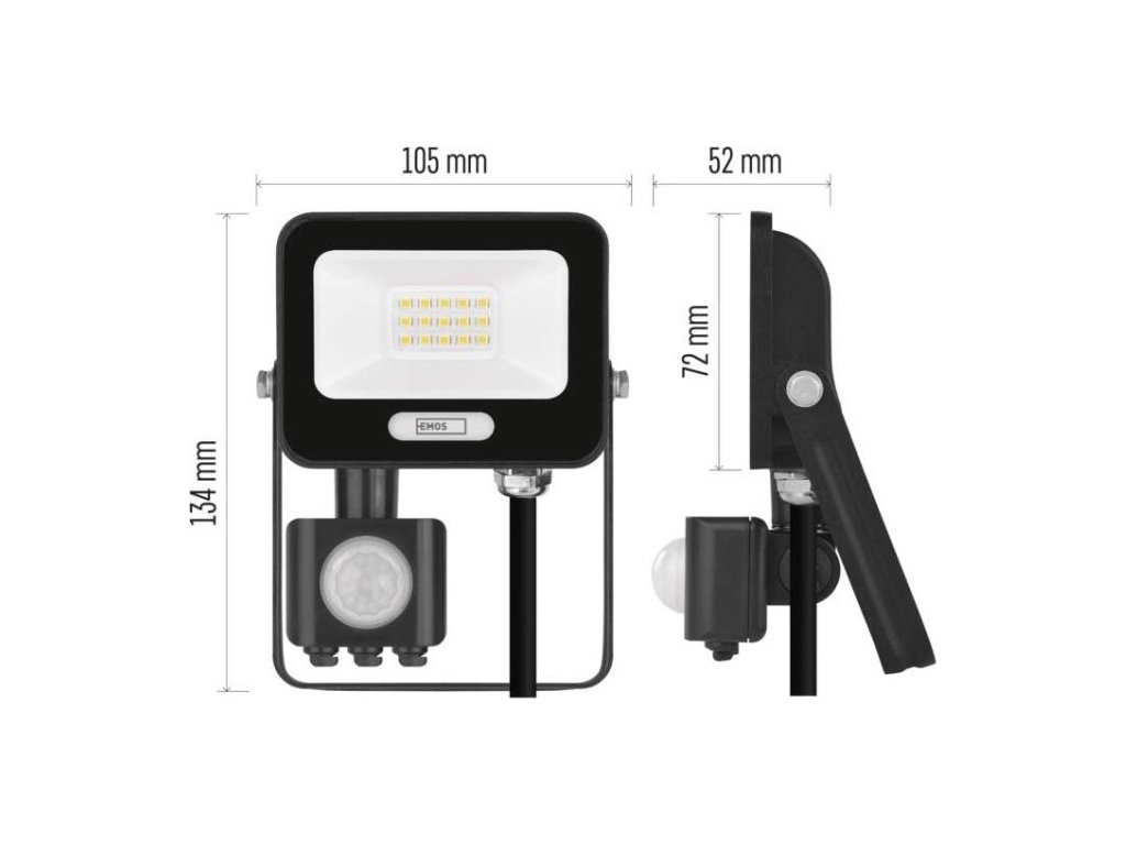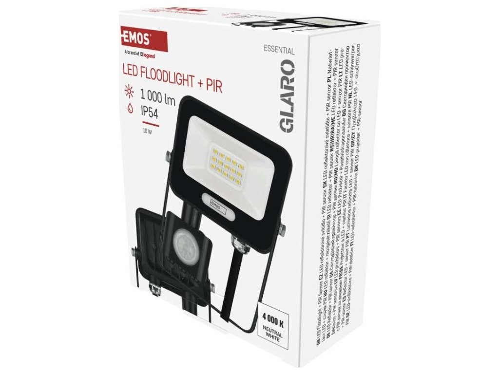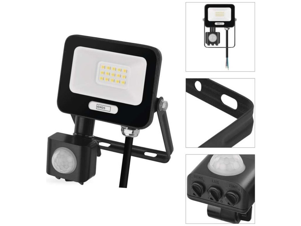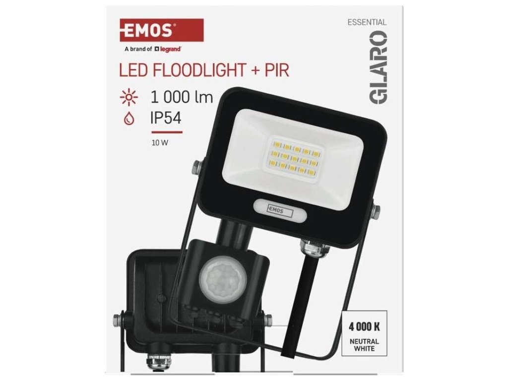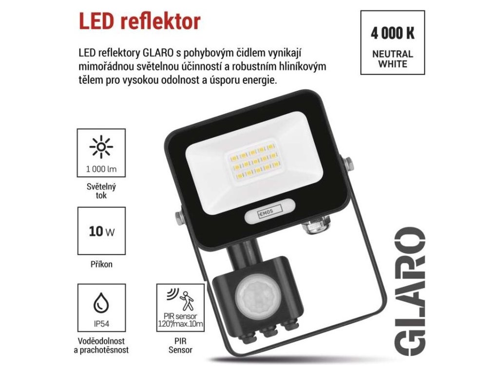 LED reflektor GLARO s pohybovým čidlem, 10 W, černý, IP54, 1000 lm, neutrální bílá