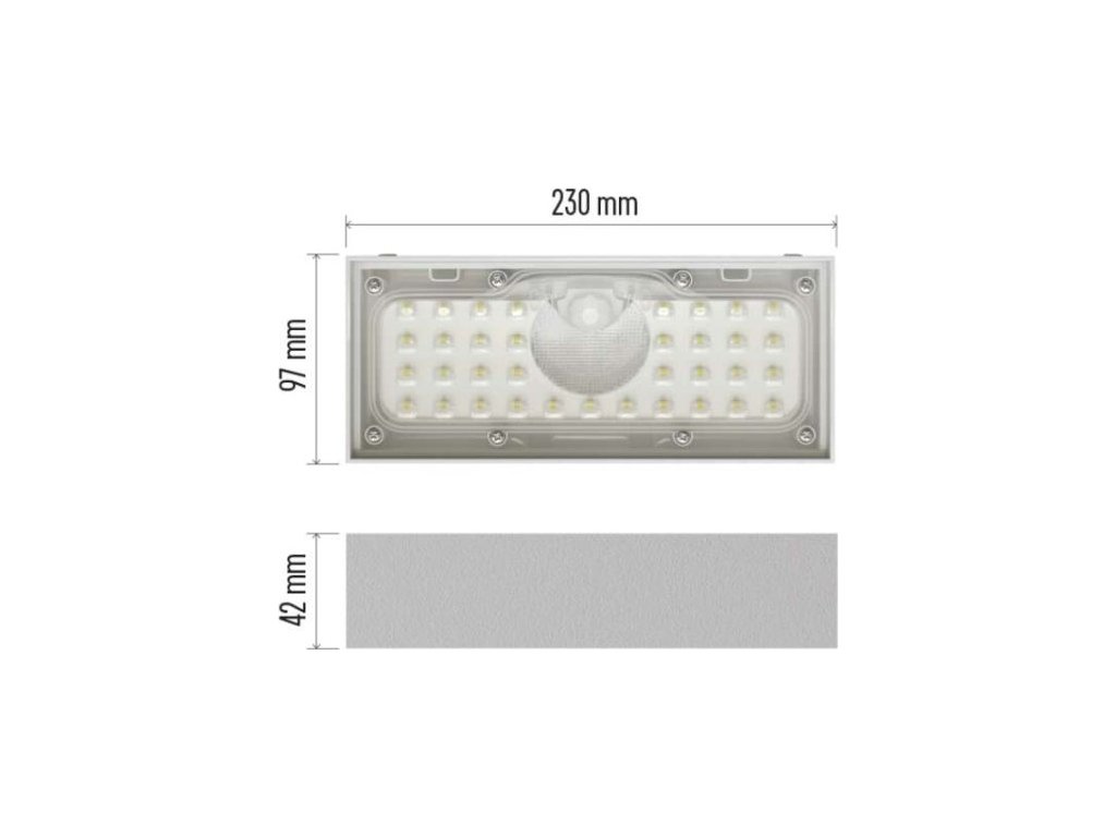 Svítidlo využívá LED zdroj s výkonem 900 lm, což zajistí jasné a rovnoměrné osvětlení až po dobu 35 hodin. Integrovaný PIR senzor s dosahem až 7 metrů spolehlivě reaguje na pohyb a aktivuje osvětlení pouze tehdy, když je potřeba, čímž šetří energii.