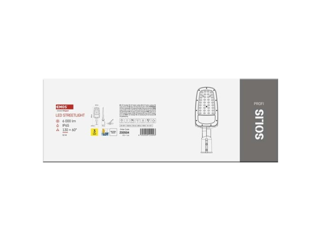 LED veřejné svítidlo SOLIS 50W, 6000 lm, neutrální bílá