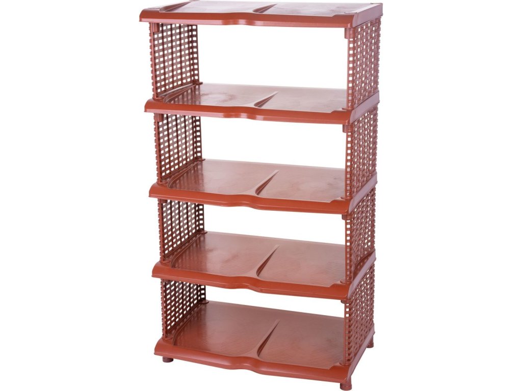 Regál Strend Pro, na topánky, 5 priečkový, plast, ratan, 48x30,5x86 cm