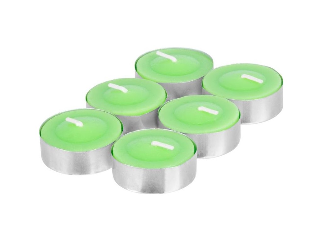 Klasická čajová svíčka bez vůně do svícnu či lucerny. Barva: zelená. Balení obsahuje 6 ks svíček.