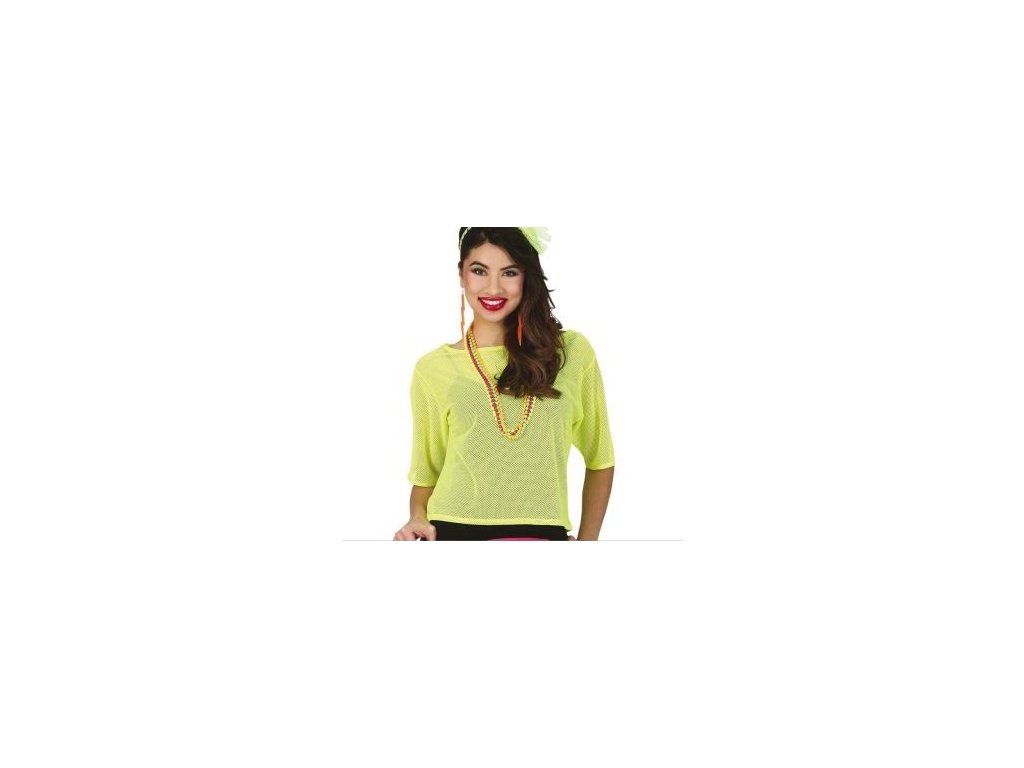 Žluté retro síťované tričko. Vhodné na retro párty. Jdete na retro párty a nevíte co na sebe? Tohle je ideální kostým. Oživte svůj vzhled odvážným stylem s tímto síťovaným žlutým retro tričkem, které propůjčí vašemu outfitu výrazný nádech minulosti.