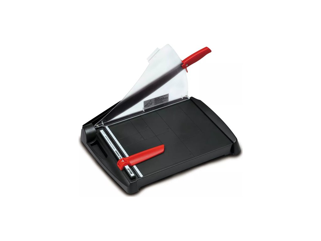 Páková řezačka, vhodná pro řez papíru do formátu A4, má maximální délku řezu 343 mm a kapacitu až 10 listů papíru najednou. Stabilitu zařízení při práci zajistí široká a pevná základna. Rozměr stolu: 337 x 473 mm. S vyznačenými měřítky a DIN formáty. Posuvný doraz papíru. Plastový ochranný kryt. Řezačka je ideální pro využití v kanceláři i domácnosti.