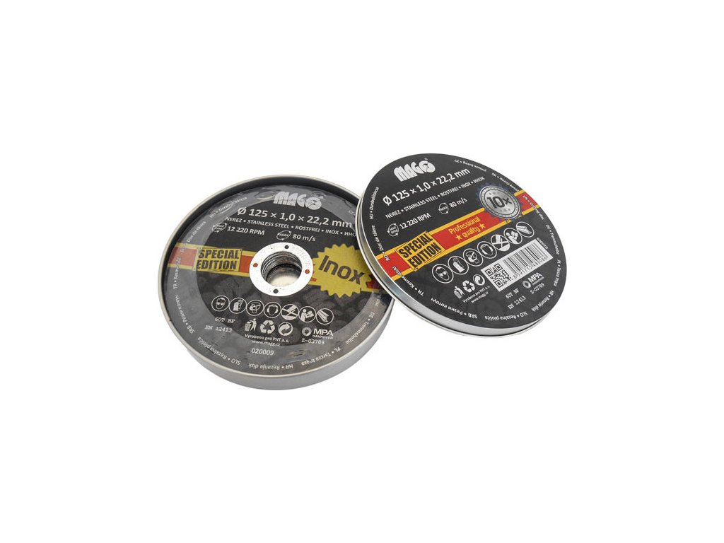 MAGG Kotouč řezný na nerez 125x1,0mm balení 10ks, plechový box