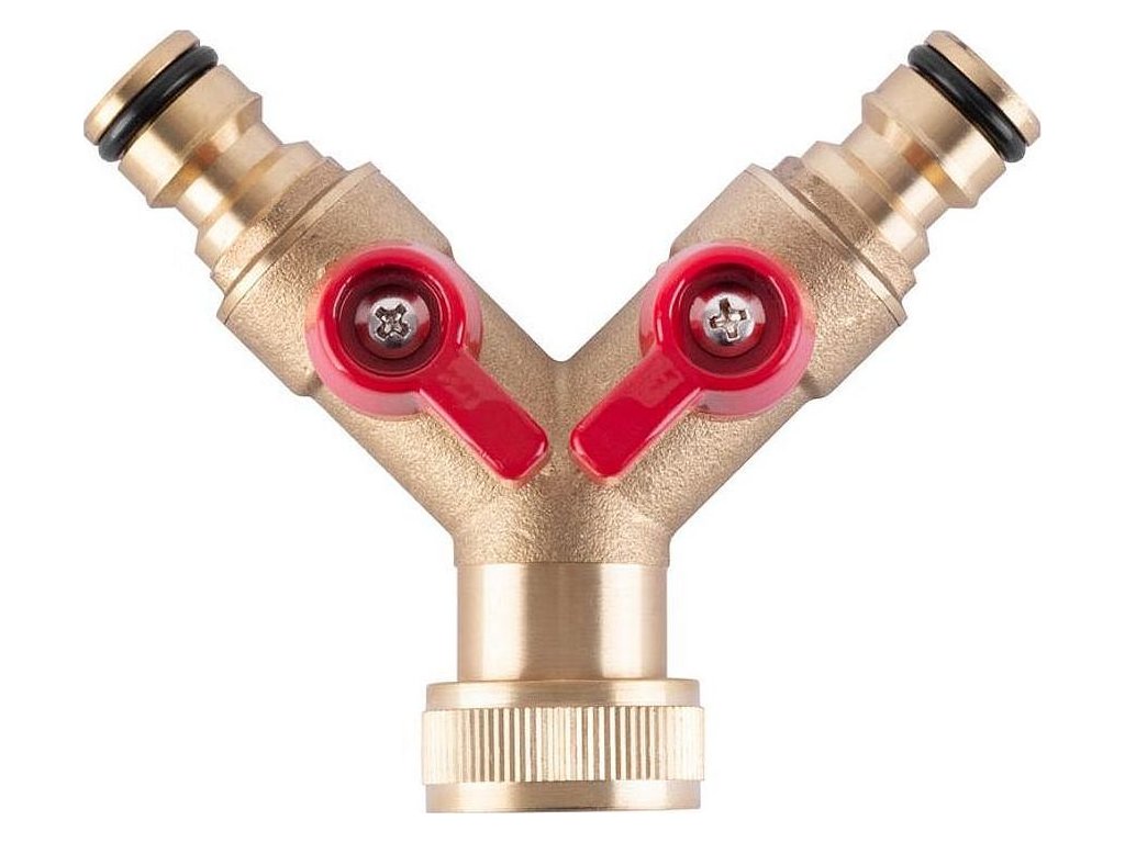 Rozbočovač GF123, 3/4", typ Y, bajonetový, spojka 2-way, s ventilmi, kovový, záhradný, na hadicu