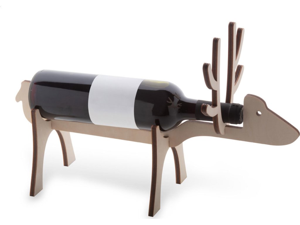 Stojan na láhev z březové překližky ve tvaru soba. Dodáváno rozložené.