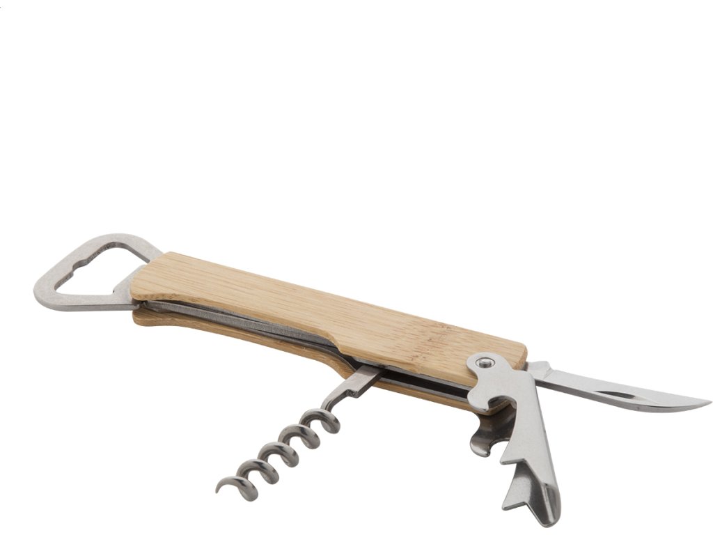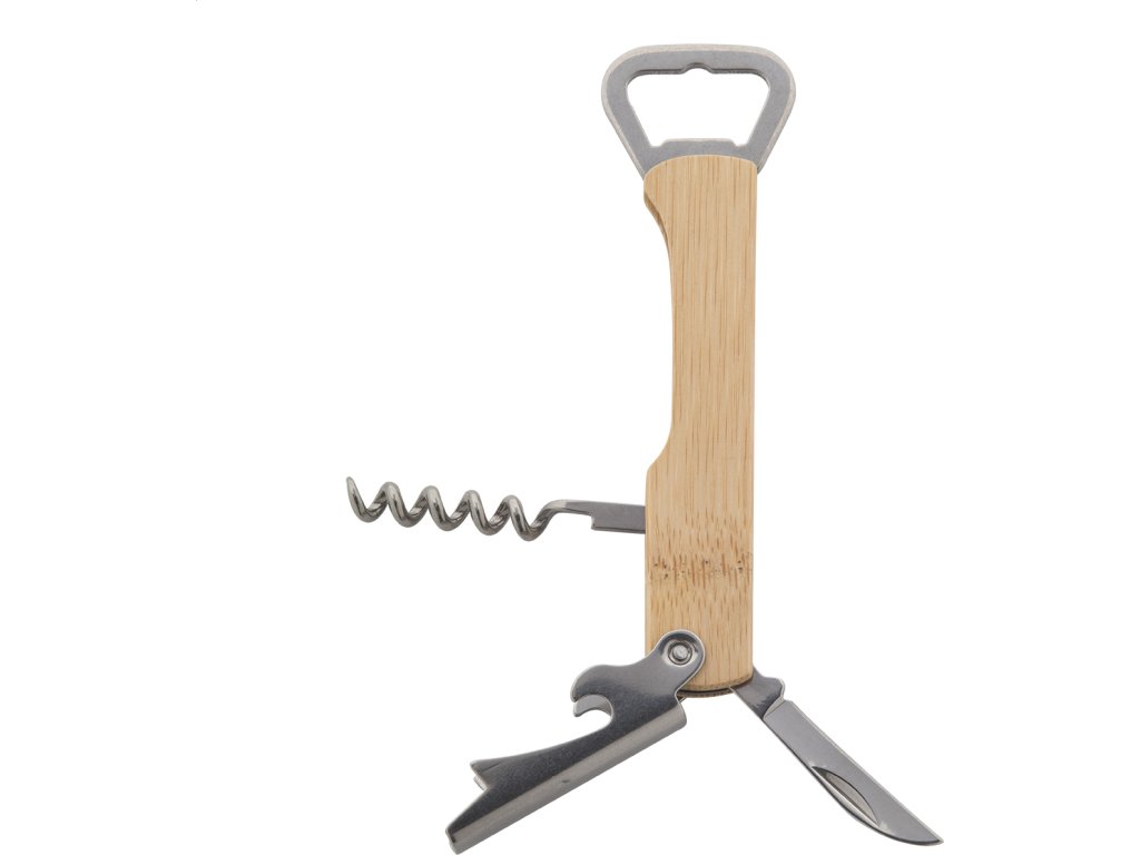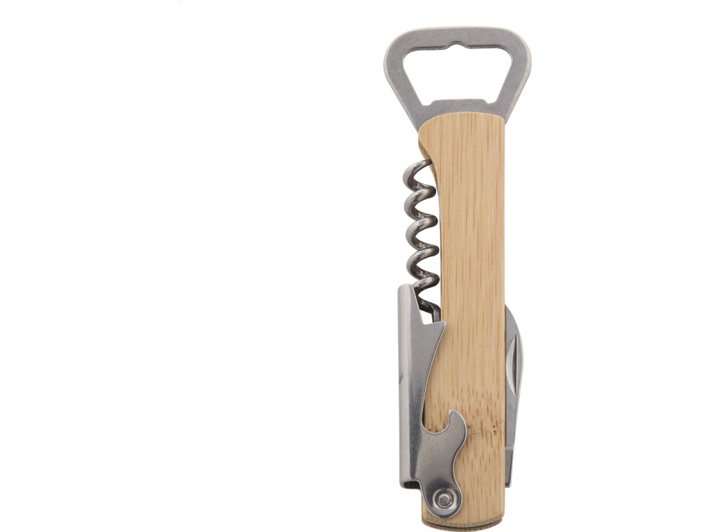 Otvírák a vývrtka z nerezové oceli s bambusovou rukojetí.