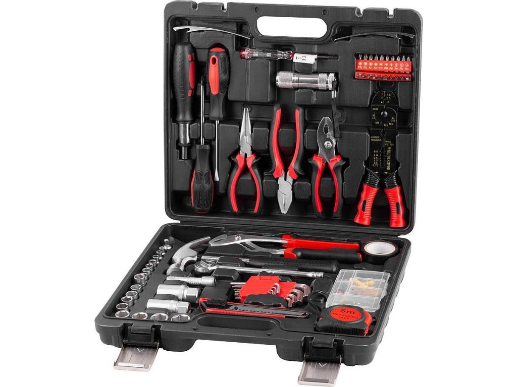 1 x LED svítilna / 1 x zkoušečka 1x 80 g kladivo / 1 x 18 mm nůž / 9x imbusový klíč o rozměru 1,5 - 10 mm
