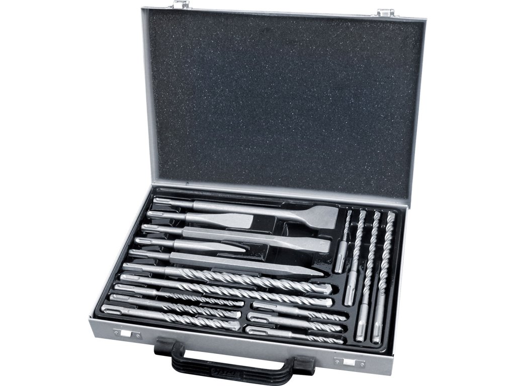 vrtáky a sekáče SDS PLUS, sada 17ks, sekáče 250mm: plochý 20 a 40mm, špičatý, sekáče 140m