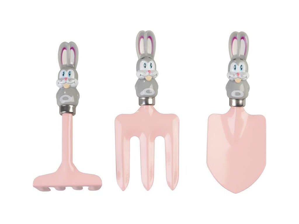 - 3-dílná sada: Obsahuje lopatku, hrábě a vidle, základní nástroje přizpůsobené pro dětské ruce, což umožňuje dětem aktivně se podílet na zahradních pracích.