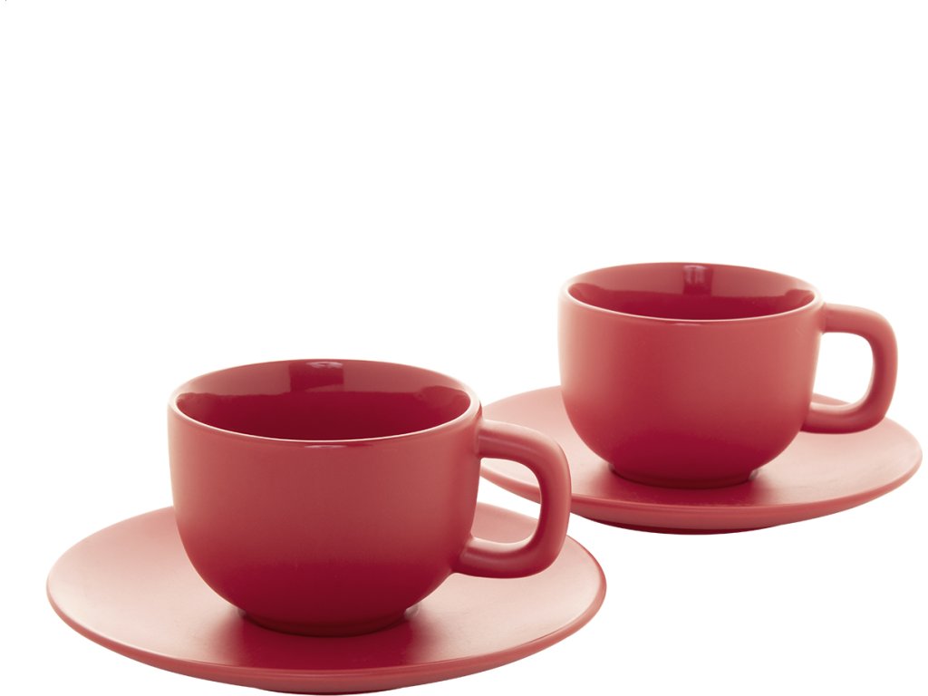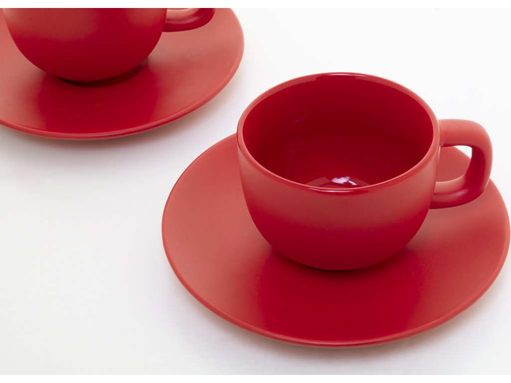 Vysoce kvalitní keramická sada šálků na cappuccino se 2 šálky a podšálky. S matnou vnější a lesklou vnitřní povrchovou úpravou. 200 ml. V kraftové papírové krabici.
