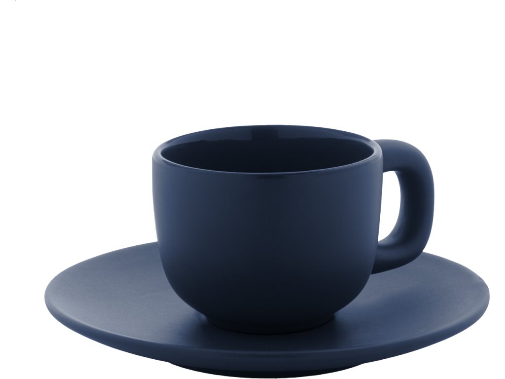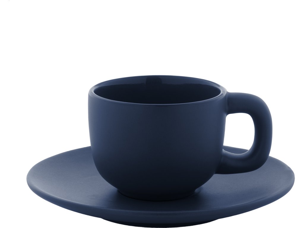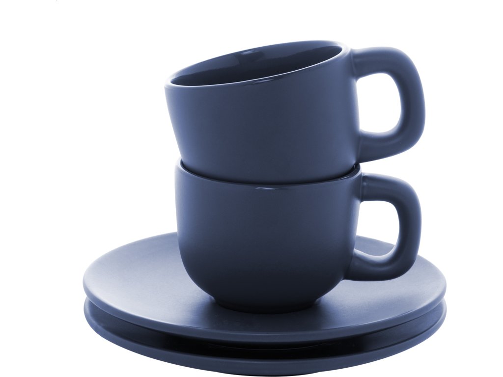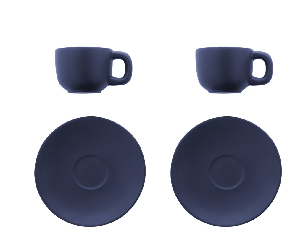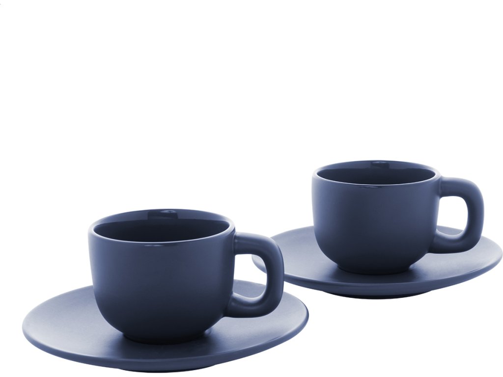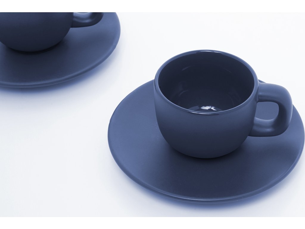 Vysoce kvalitní sada keramických šálků na espresso se 2 šálky a podšálky. S matnou vnější a lesklou vnitřní povrchovou úpravou. 85 ml. V kraftové papírové krabici.