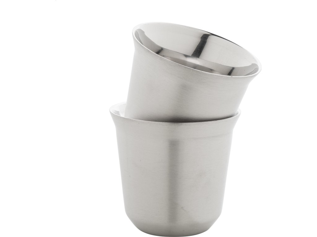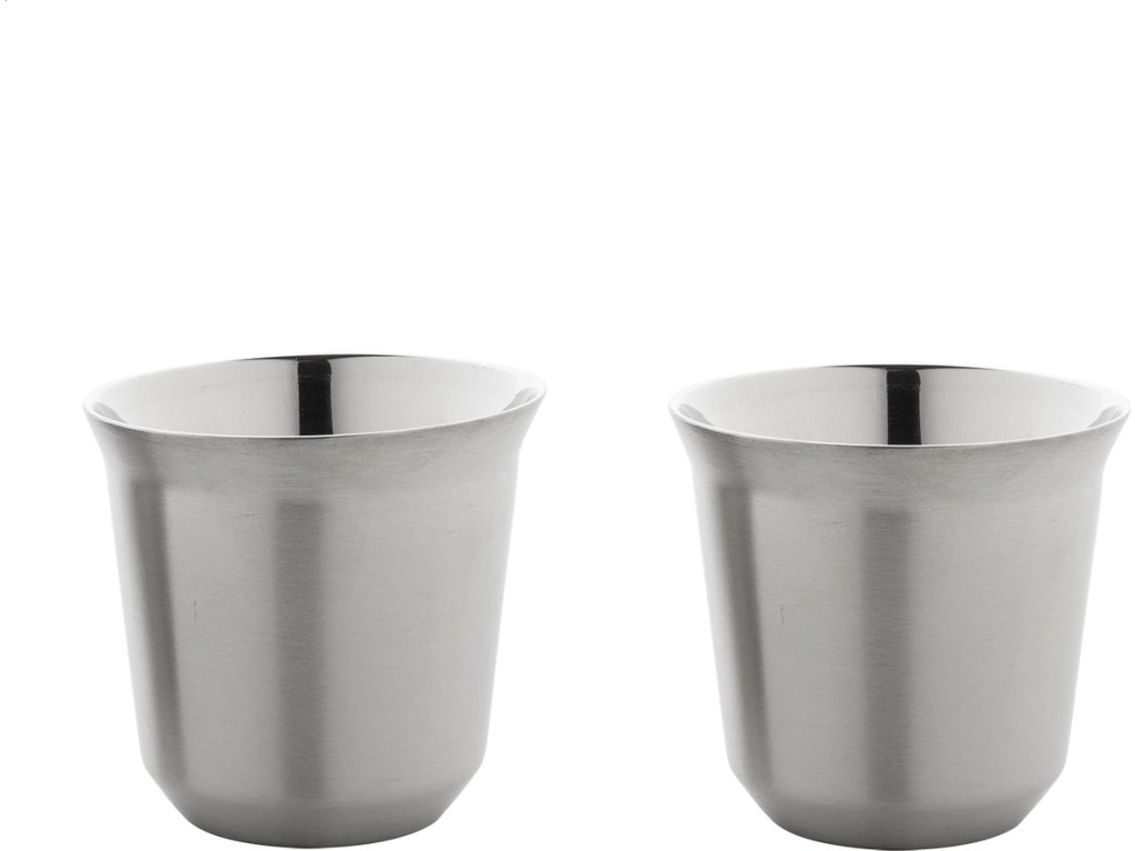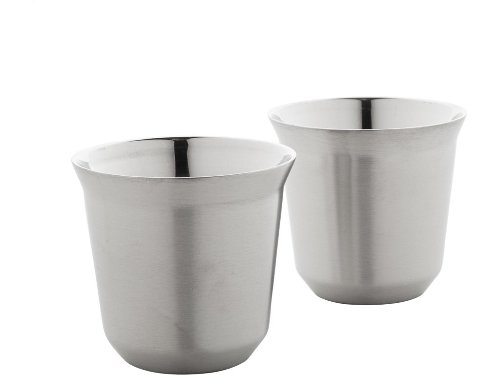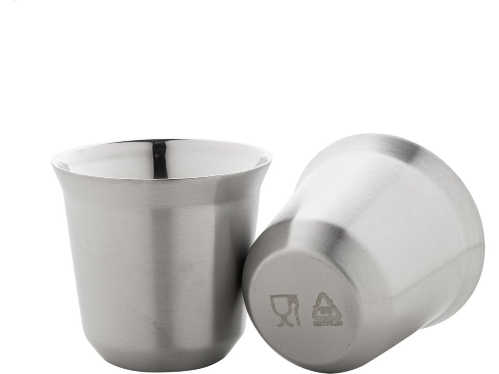 Sada 2 dvoustěnných termohrnků na espresso ve tvaru kávových kapslí z recyklované nerezové oceli, 80 ml. V krabičce z kraftového papíru.