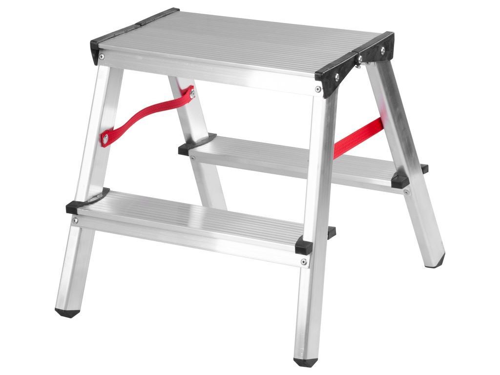 Schodíky sú vyrobené z najkvalitnejšieho hliníka, ktorý zaisťuje ich dlhodobú životnosť. Obojstranné schodíky majú mnoho využití pre každodenné malé opravy alebo stavebné práce.